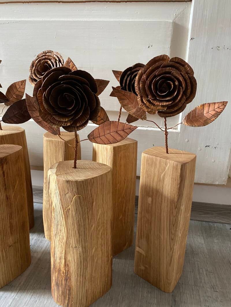 Kupferrosen mit Holzvase